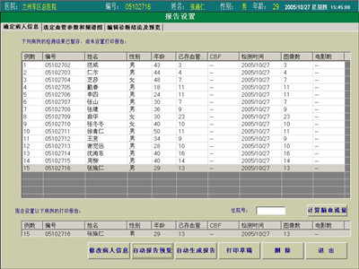 超聲經(jīng)顱多普勒血流分析儀軟件中確定病人信息,點(diǎn)報(bào)告設(shè)置按鍵后,系統(tǒng)會(huì)自動(dòng)進(jìn)入“確定病人信息”界面,并且默認(rèn)設(shè)置當(dāng)前檢測(cè)病人或最近一次檢測(cè)病人的報(bào)告。