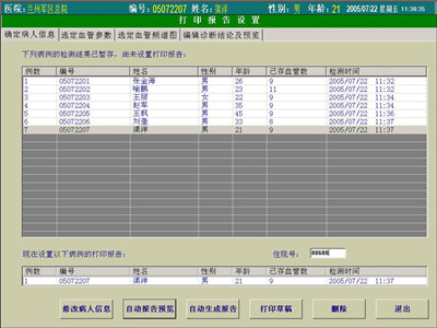 1)操作者可自動(dòng)預(yù)覽報(bào)告和打印草稿,打印草稿只打印參數(shù)值列表不打印頻譜圖像,目的是方便操作者進(jìn)行仔細(xì)分析后再詳細(xì)編輯報(bào)告;