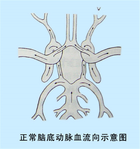 2)枕窗:超聲束經(jīng)枕骨下枕骨大孔進(jìn)入顱內(nèi)的通道。位于枕外隆突下3~3.5cm處??蓹z測到顱內(nèi)段基底動(dòng)脈,椎動(dòng)脈,小腦后下動(dòng)脈。用2MHz 脈沖多普勒探頭,篩查深度: 60~80mm 左右,體位: 一般情況下病人取坐位,頭向前傾盡可能使下頜接觸到胸部,危重病人也可側(cè)臥位,盡量前傾以拉開頭部與寰椎之間空隙。
