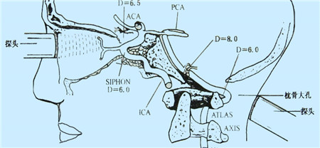 超聲經(jīng)顱多普勒血流分析儀可利用PW探頭通過調(diào)節(jié)篩查深度和探頭角度并利用血流方向、聲音和一些輔助試驗(yàn)等對各檢測窗的檢測血管進(jìn)行判別和檢測。